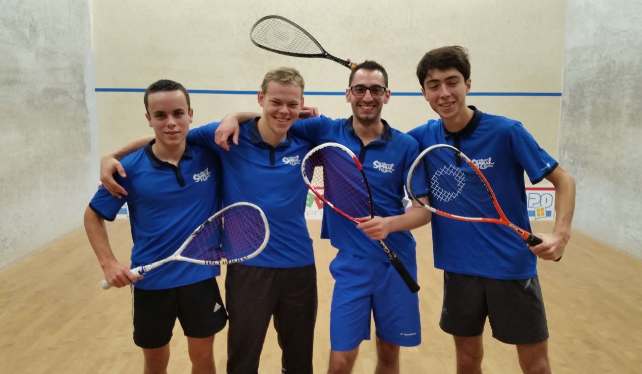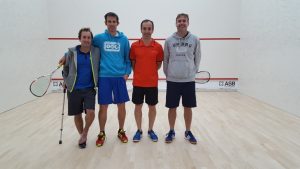 Je débute donc contre Jules Canada revenu de Belgique spécialement pour cette journée Squash ! . Le match s’ avère évidemment très serré mais doit permettre de mettre l’équipe dans de bonnes dispositions ! .